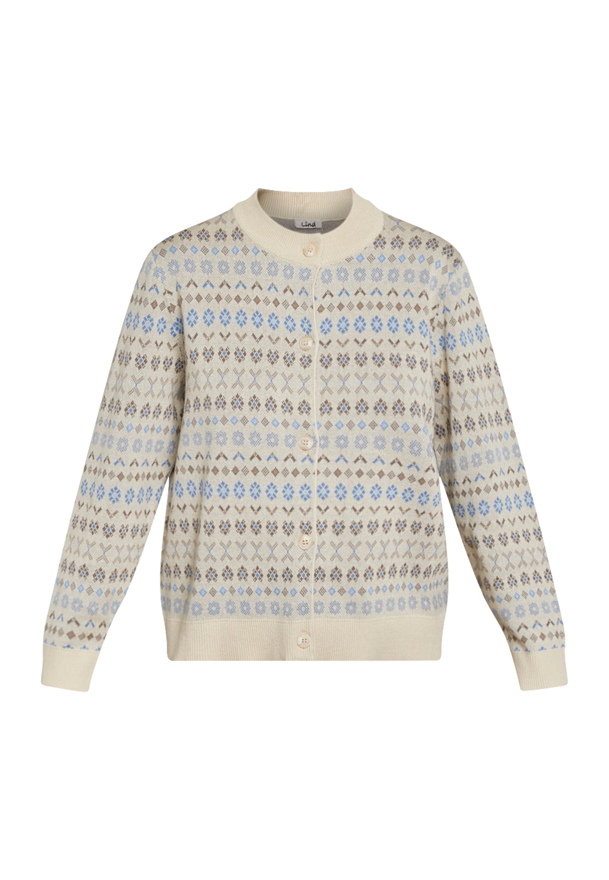 Denne strikkede cardigan fra Lind kombinerer blød komfort med et dekorativt og hyggeligt udtryk. Det smukke mønster giver et moderne twist til det klassiske design, mens den 100% bomuldsstrikkede kvalitet sikrer en let og behagelig følelse hele dagen. Cardiganen har en lige pasform, der gør den nem at style både åbent og lukket – alt efter, hvilket look du ønsker.