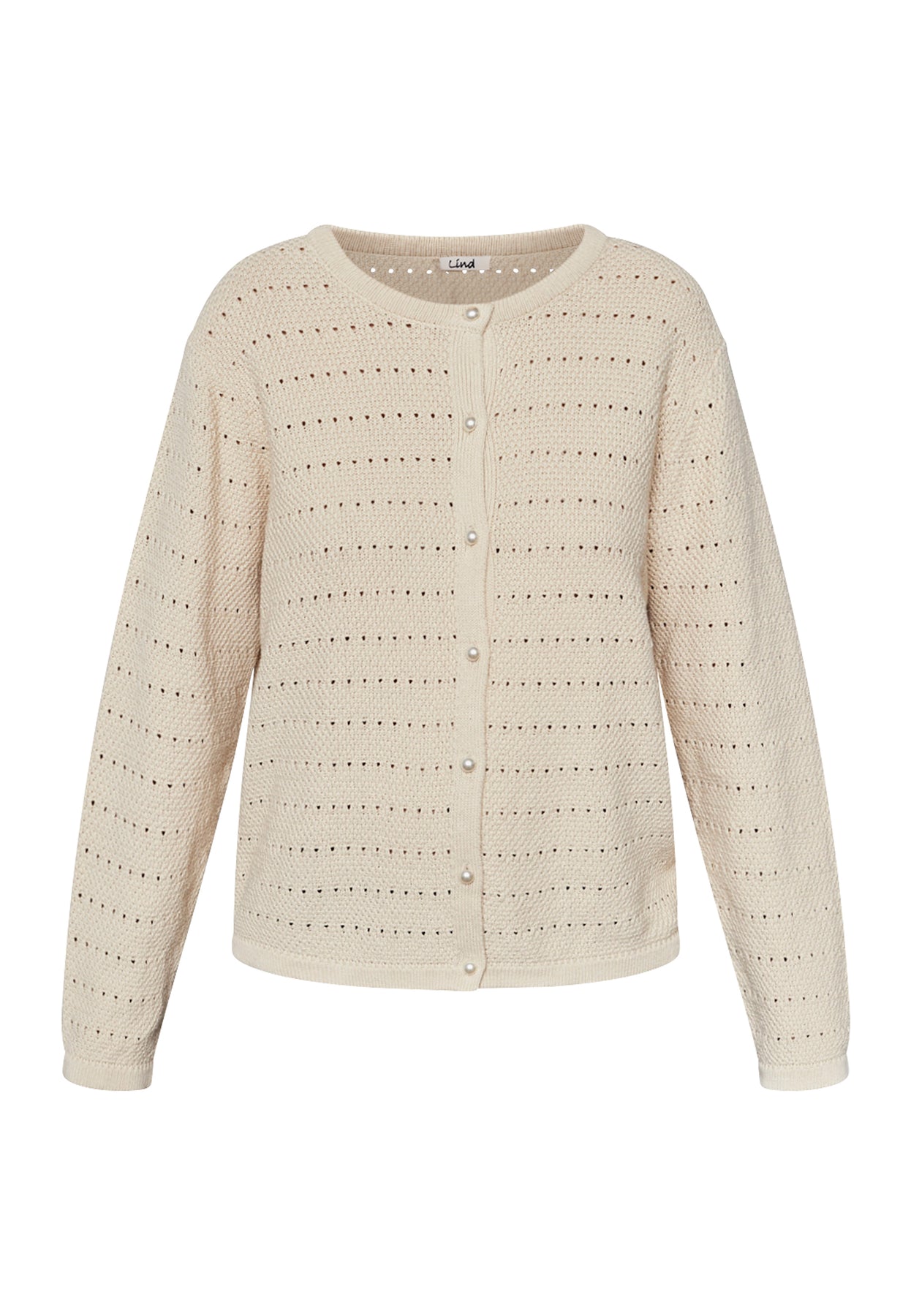 Denne strikkede cardigan fra Lind har et roligt og klassisk udtryk, der understreges af fine, enkle detaljer. Den er strikket i ren bomuld og har en blød, behagelig kvalitet, som gør den nem at bruge dagen igennem. Den lukkede front og det rene design giver modellen et afslappet, men velklædt look.