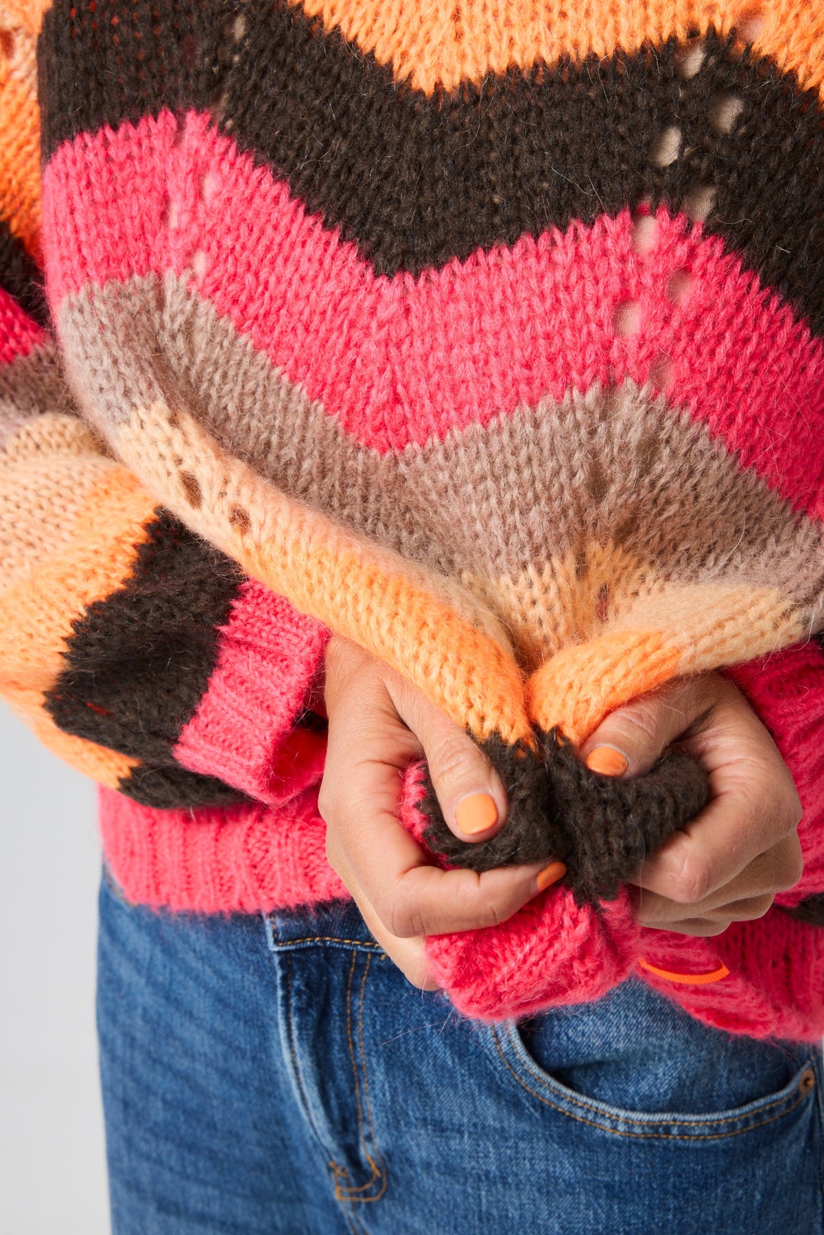 Lene Beier har sat sit præg på designet med sin sans for livsglæde, varme og autenticitet. Sweateren er produceret i Italien i en skøn mohairblanding, der føles blød, let og varm på samme tid – en kvalitet, man mærker med det samme.
