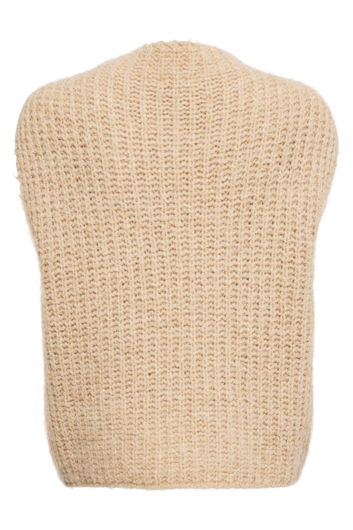 Strikket i Italien i en luksuriøs blanding af uld, alpaka og bløde fibre, giver den en varm og let fornemmelse mod huden. De rolige, neutrale nuancer understreger vestens naturlige udtryk og gør den nem at kombinere med alt fra skjorter til kjoler.
