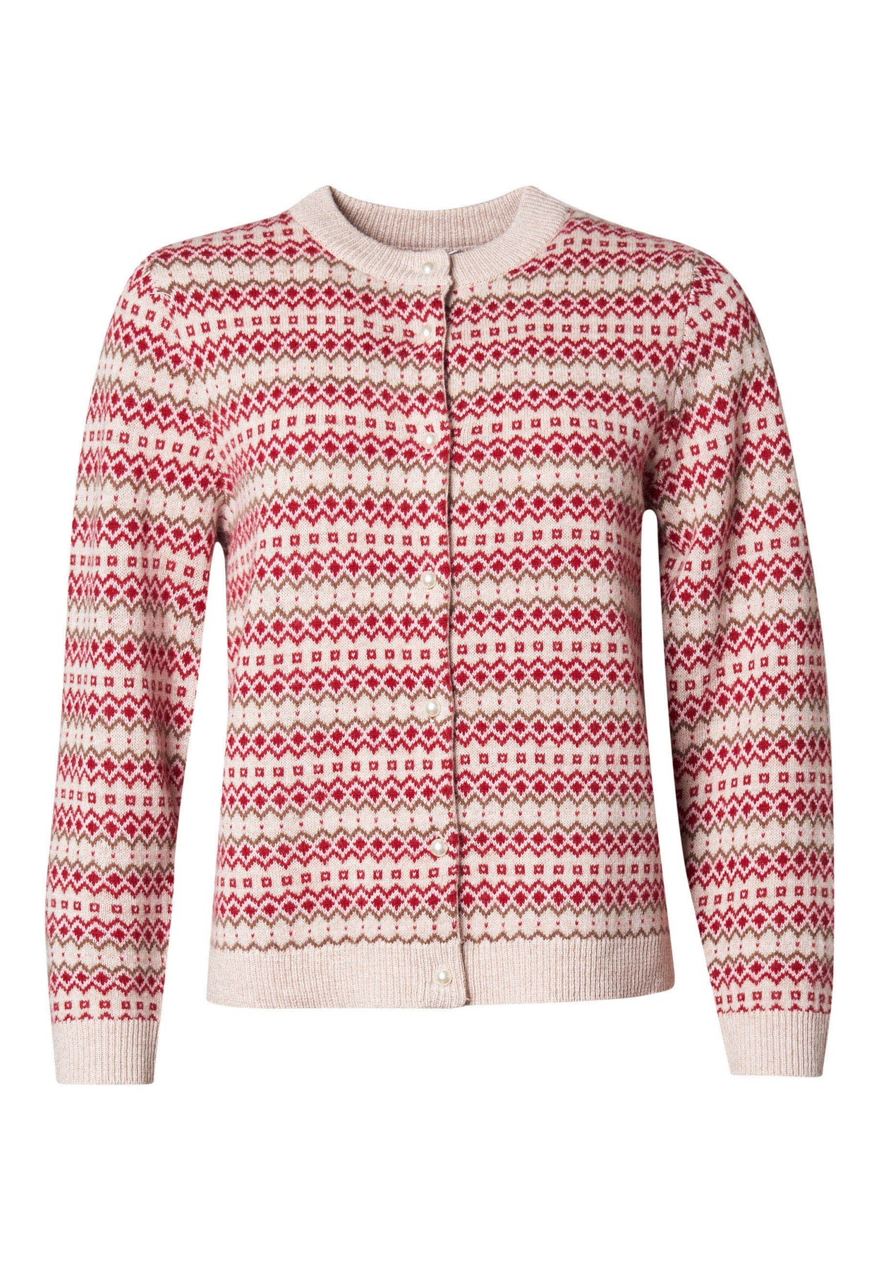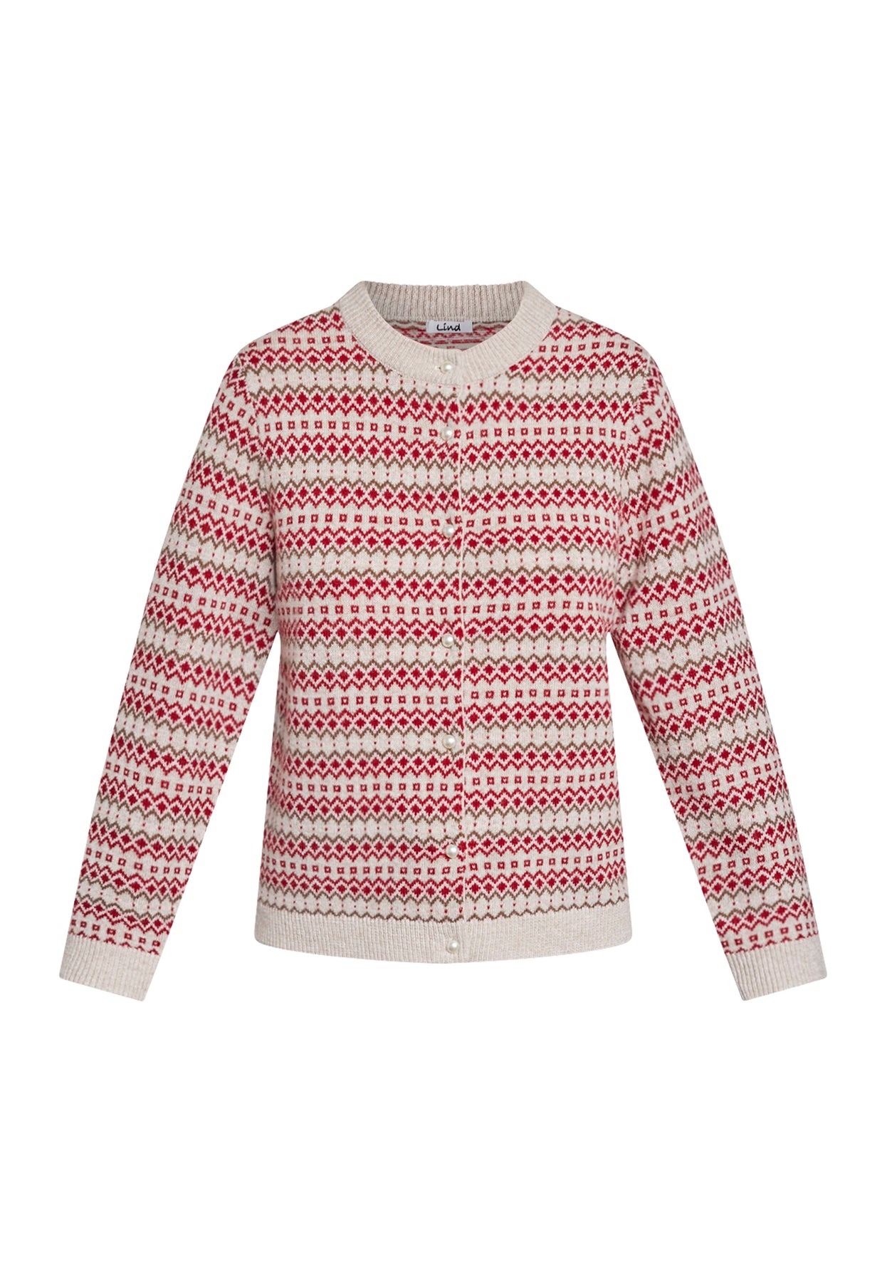 Denne strikkede cardigan fra Lind har et smukt, levende mønster, der giver et friskt og feminint udtryk. Den bløde strikkvalitet føles behagelig mod huden, og den lette varme gør cardiganen oplagt til både indendørs hygge og kølige dage i det fri. Det gennemgående mønster tilføjer karakter til designet, samtidig med at den lige pasform holder looket enkelt og tidløst.