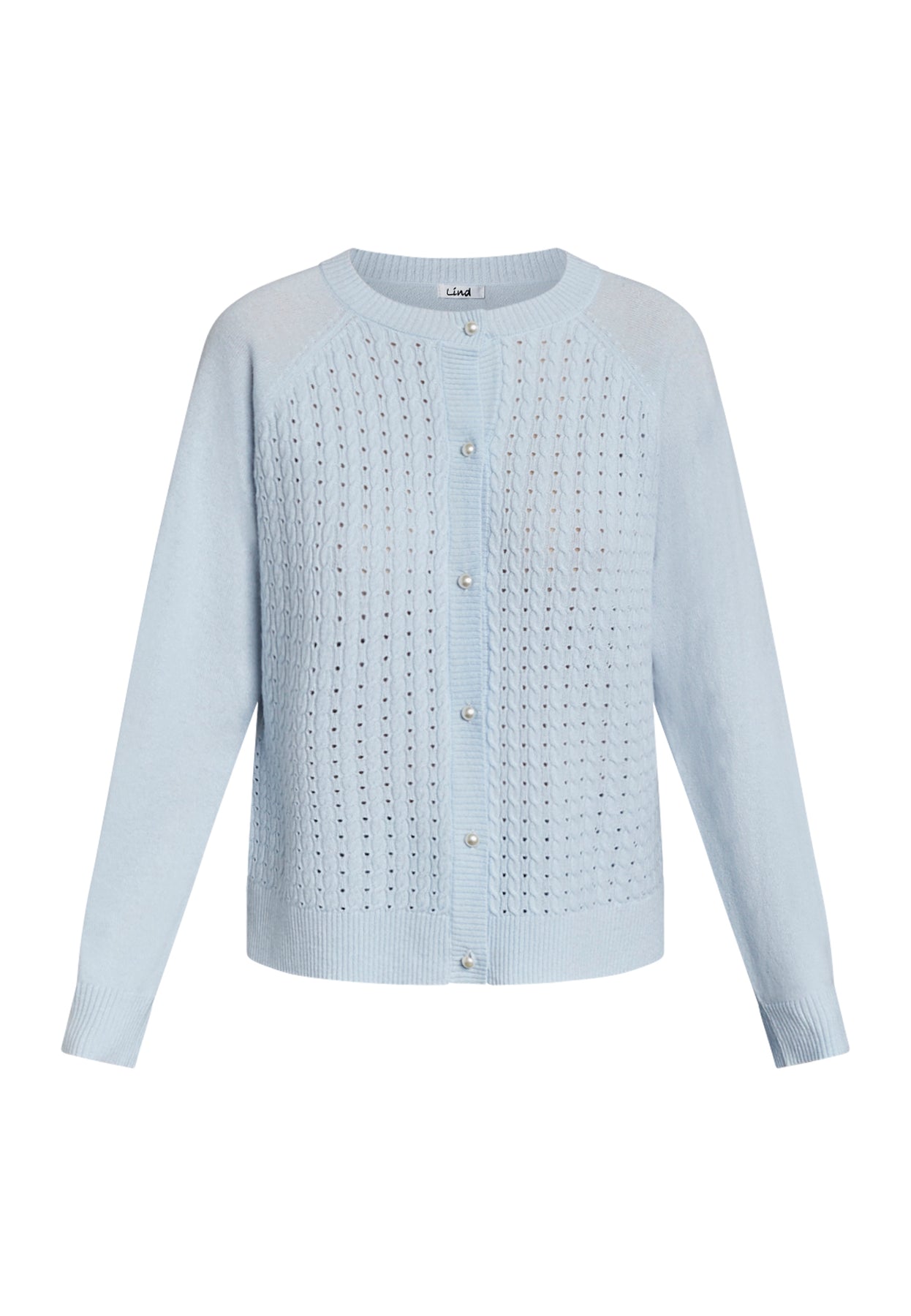 Denne strikkede cardigan fra Lind er en blød og elegant klassiker, der hurtigt bliver en favorit i garderoben. Det fine strukturmønster giver et feminint og harmonisk udtryk, mens den lette og varme strikkvalitet gør den skøn at have på – både til hverdag og de lidt køligere dage.